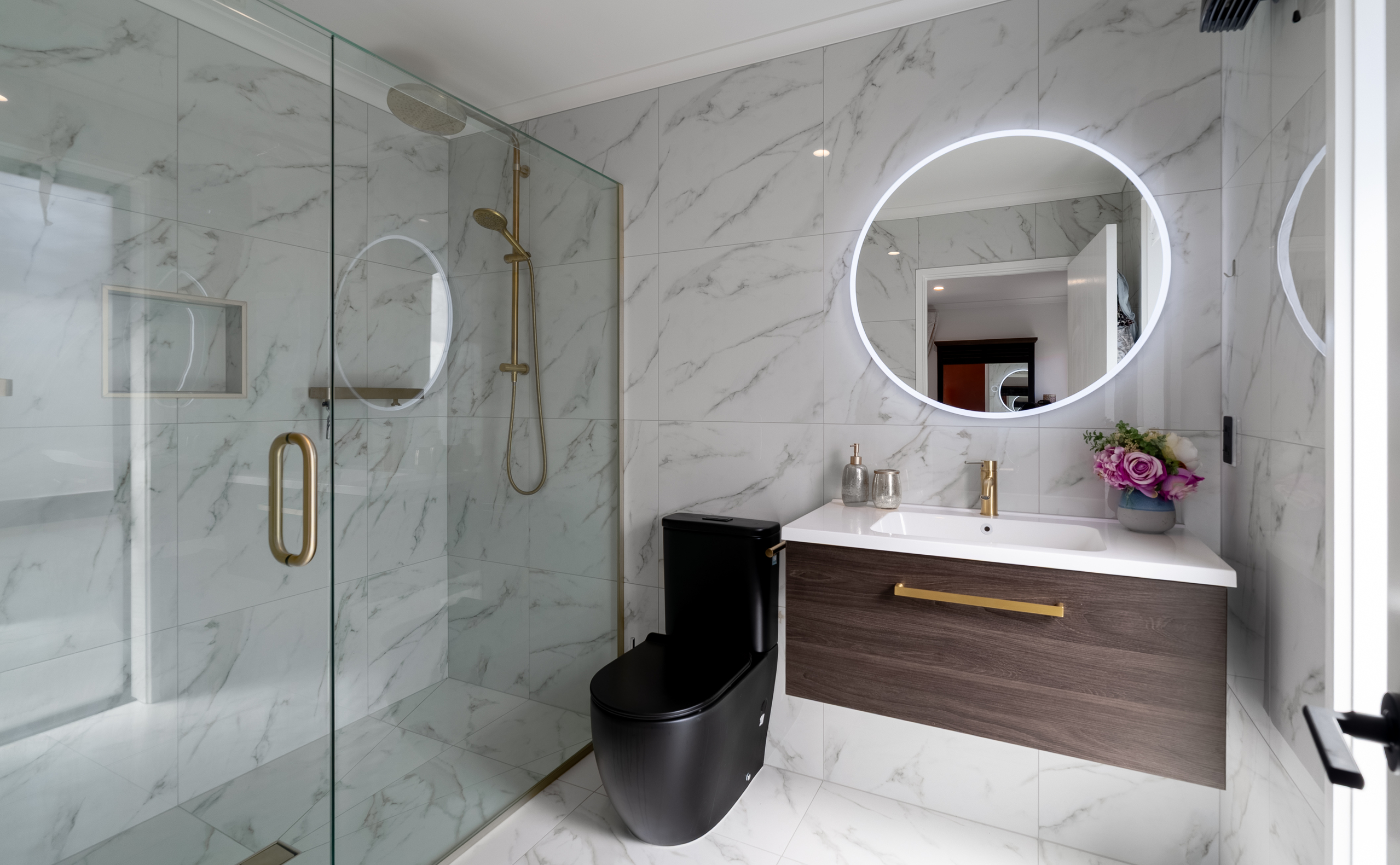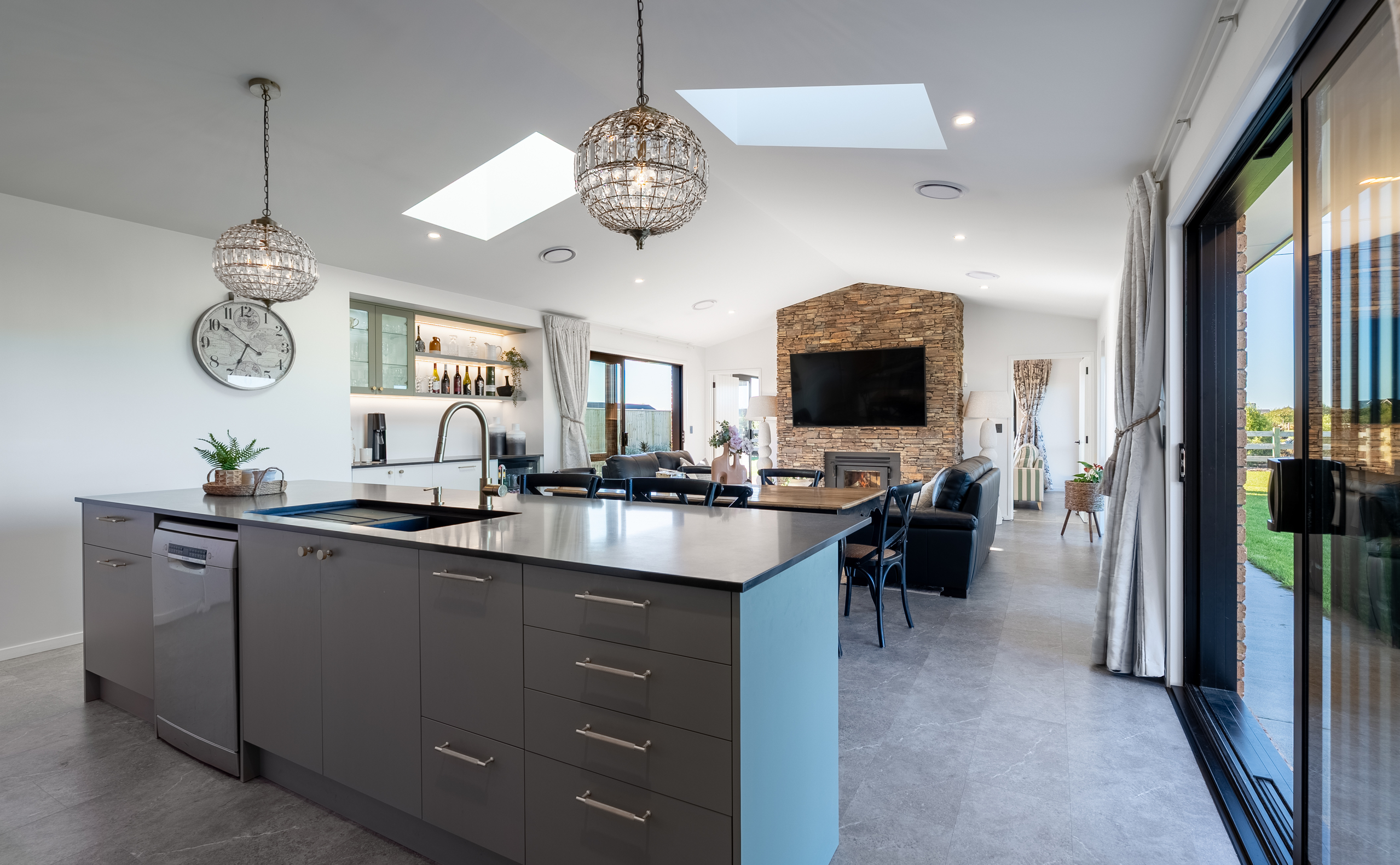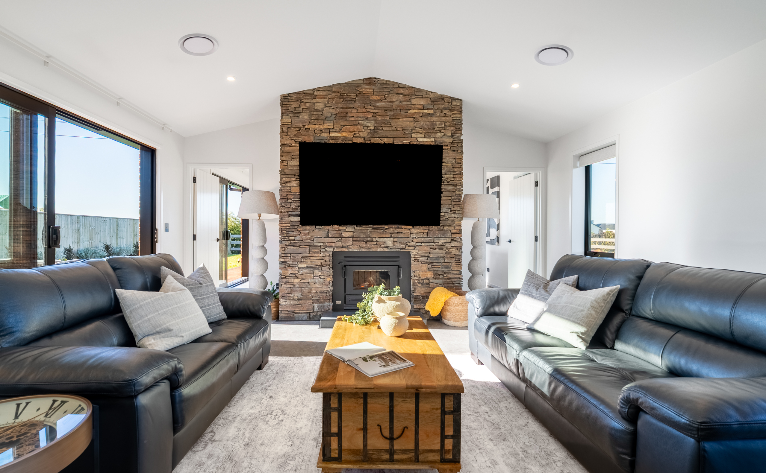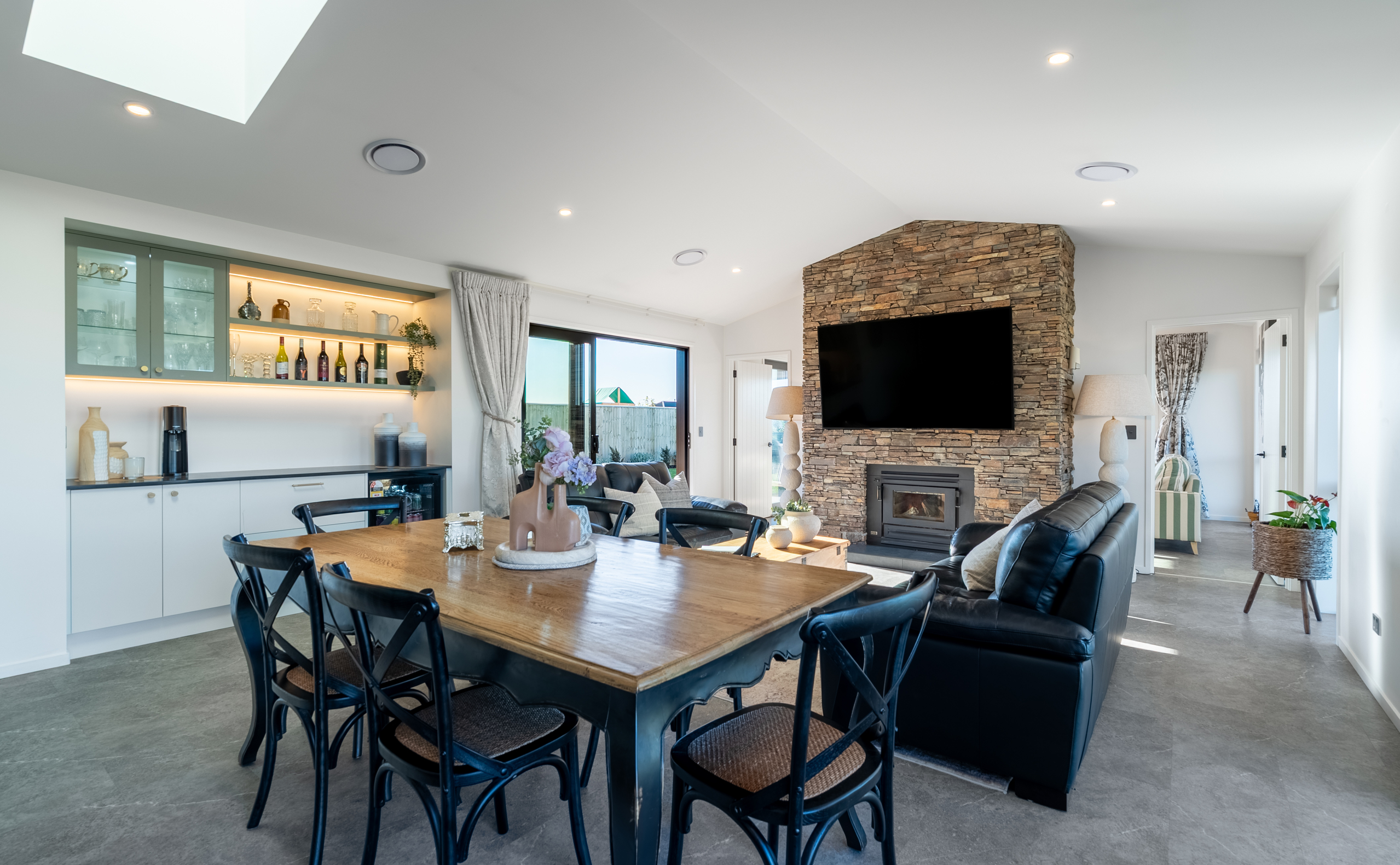 Inside, light-filled open-plan living forms the heart of the home. The spacious kitchen, dining, and living area has been designed for effortless flow and connection, creating a central hub that caters equally to daily living and hosting family and friends. Large sliding doors extend the living spaces outside, opening onto timber decking - ideal for alfresco dining, summer gatherings, or simply relaxing in the sun. Multiple living zones provide flexibility for families, or those working from home, offering both shared spaces and quiet retreats. The layout is intuitive and well considered, ensuring the home feels spacious yet inviting.