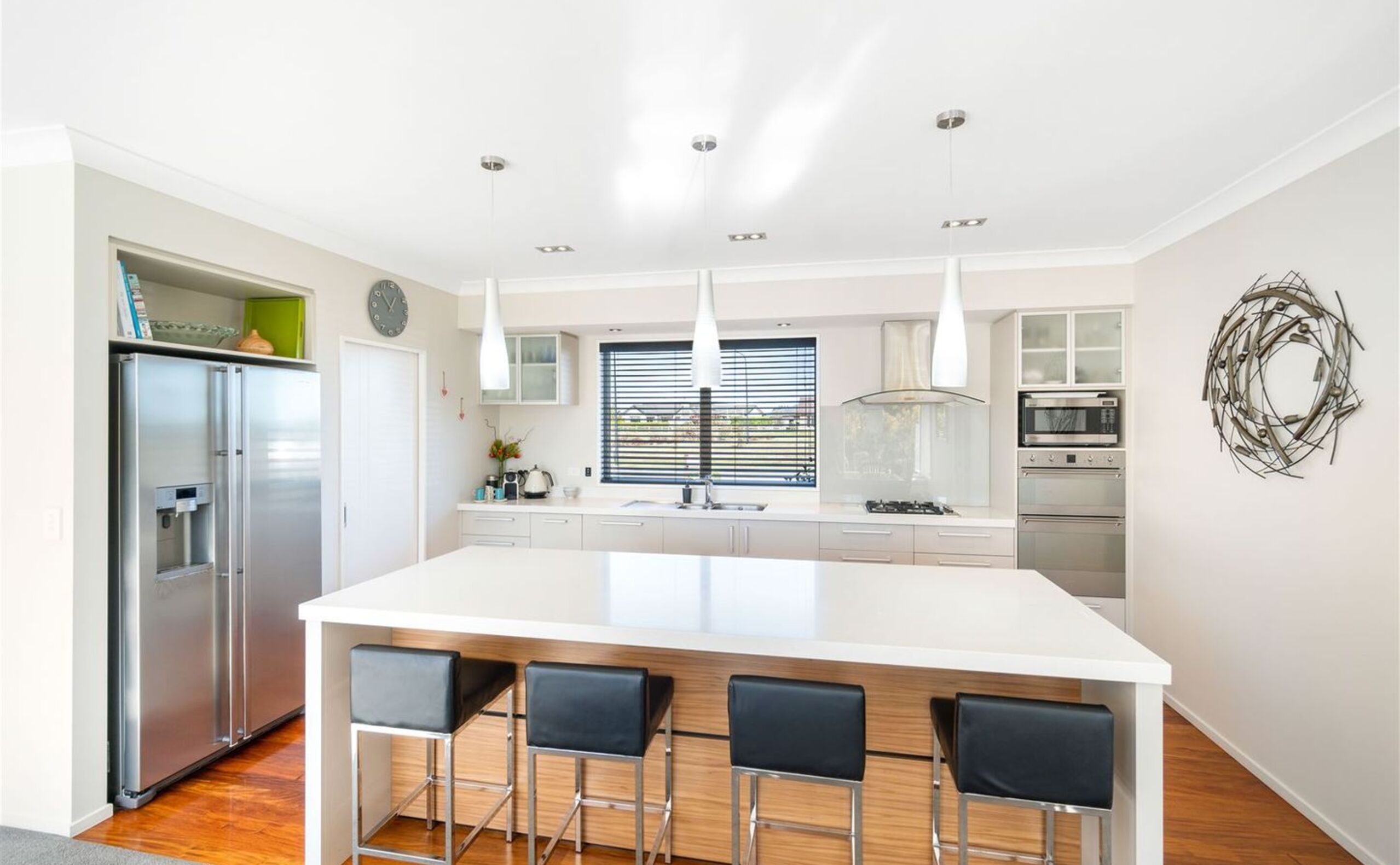 From the moment you arrive, the striking mix of exterior claddings makes a bold first impression. Step inside and you're greeted by a welcoming entrance with statement wallpaper that sets the tone for the style and quality showcased throughout. At the heart of the home, the sleek designer kitchen overlooks the reserve and flows effortlessly into the open-plan dining and living area-perfect for family life and entertaining alike. Featuring Tristone benchtops, integrated dish drawers, and a generous walk-in pantry, this kitchen is as functional as it is impressive.