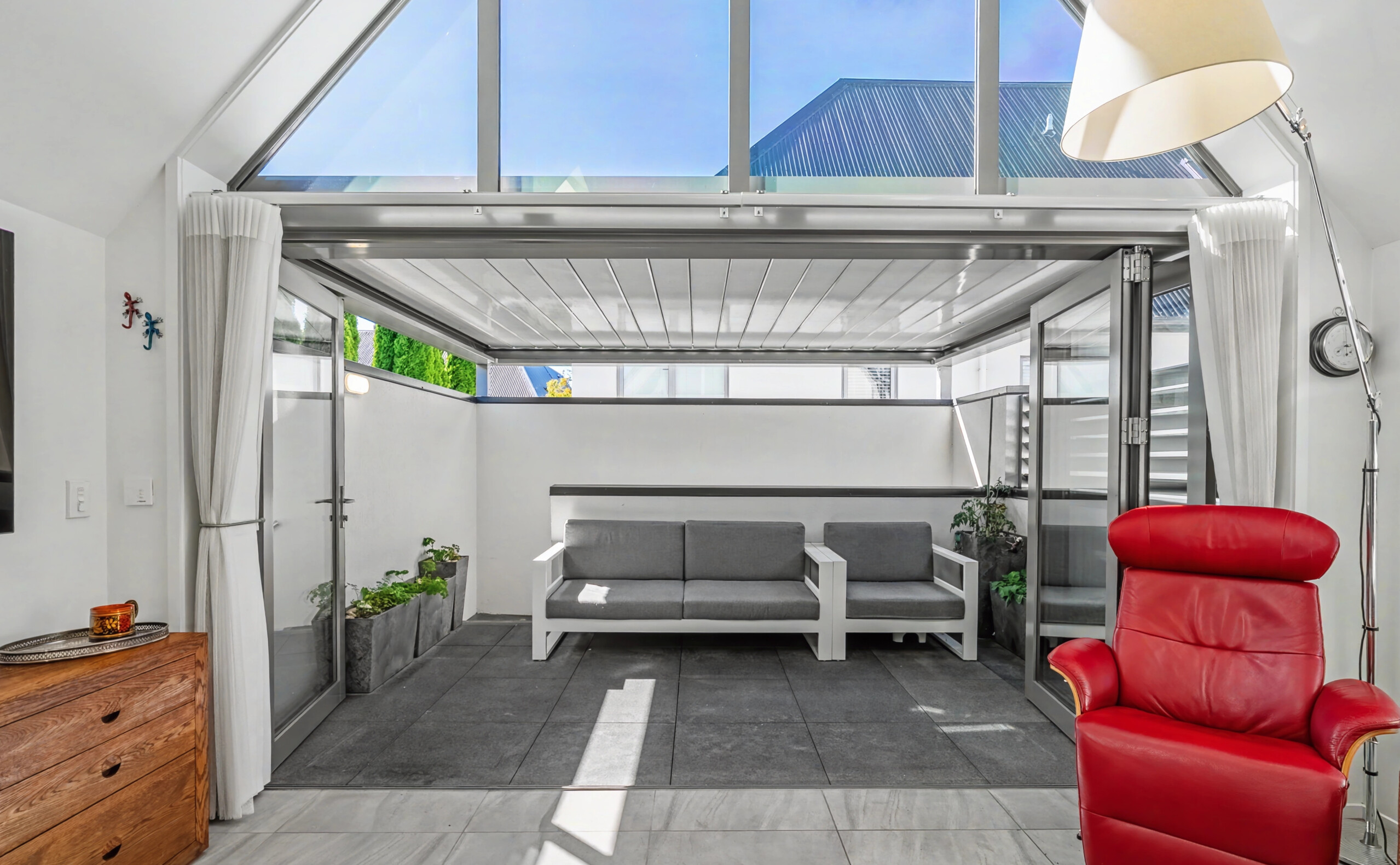 The kitchen is modern and functional, designed with sleek cabinetry and offering a practical space for everyday cooking while still feeling stylish and contemporary. Featuring quality appliances such as a Samsung fridge, Smeg Oven, Stove, Rangehood, and Dishwasher and a Miele washing machine, you truly experience a touch of luxury with this home. Step out into your own private courtyard with Automated Sensor Louvres for the perfect outdoor setting.